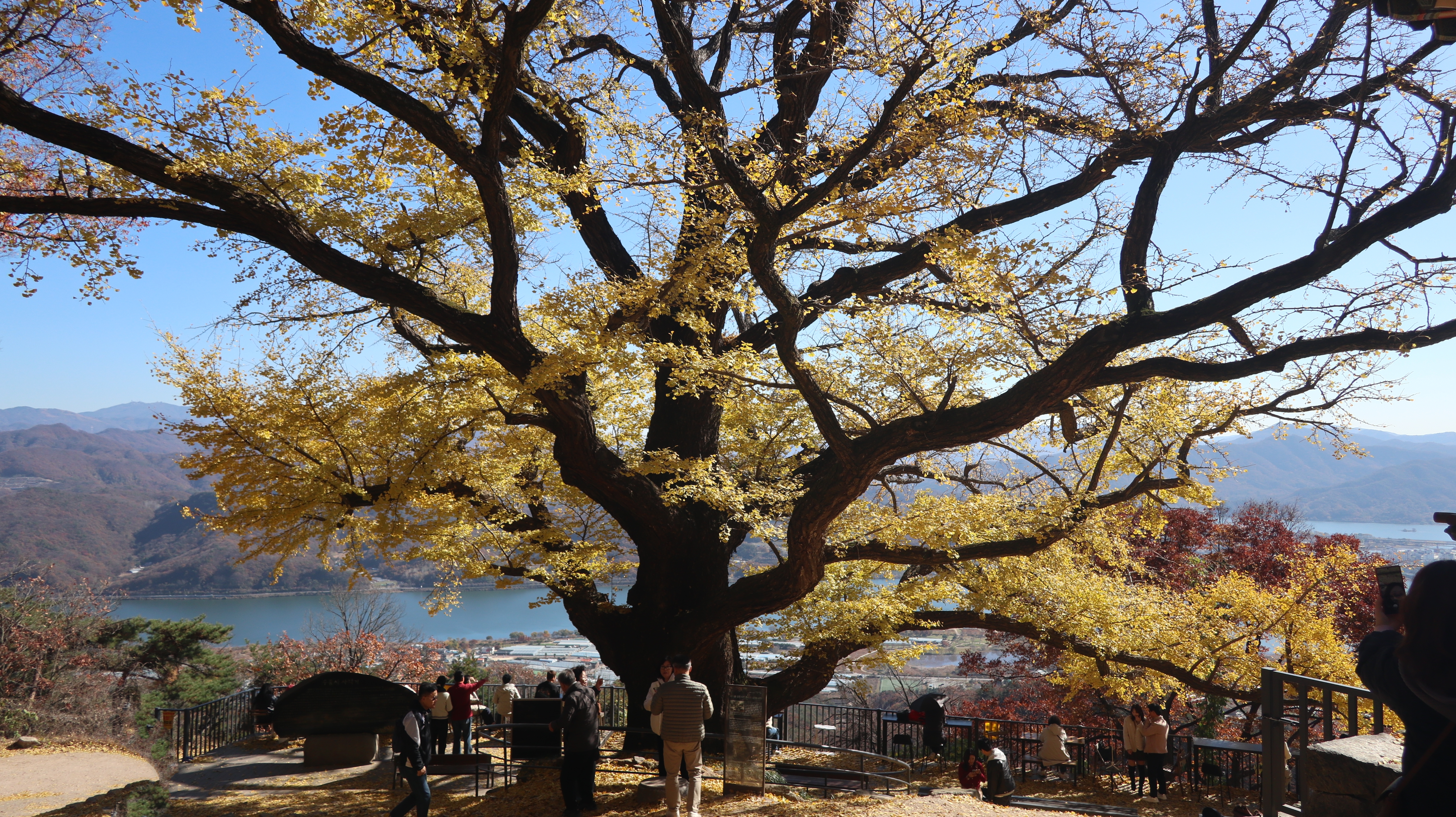 500년 은행나무 아래에서 노을이 젖어드는 두물머리를 바라보면