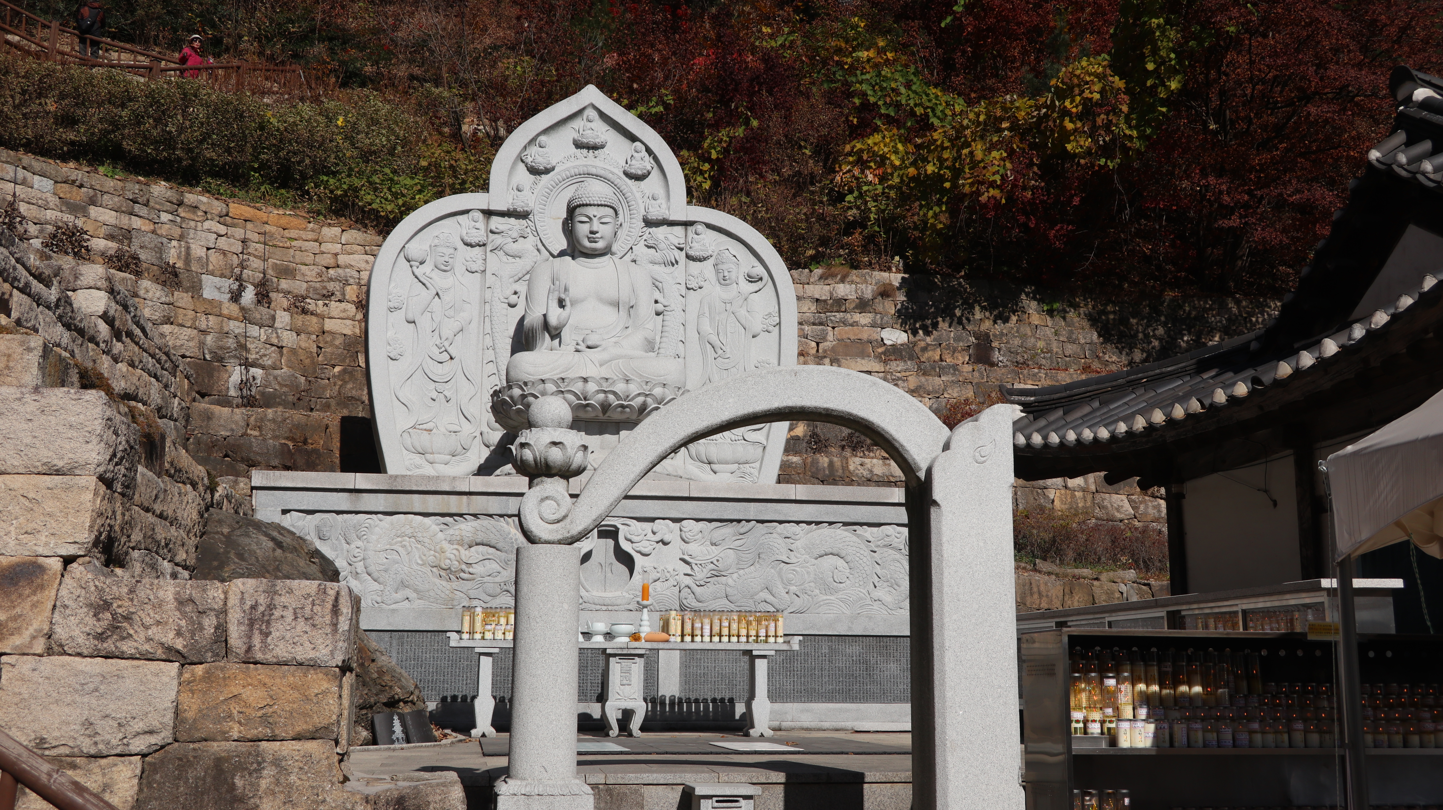 불이문을 지나면 산길 옆으로 부처님상이 방문객을 맞이하고,